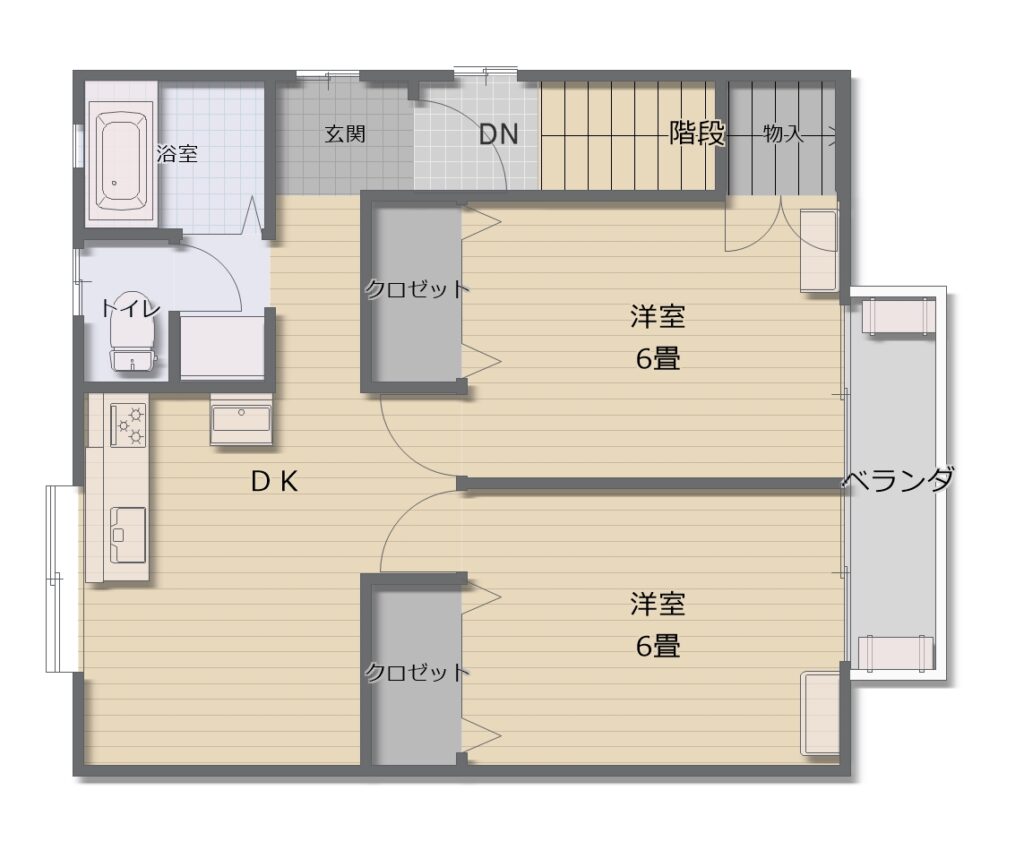 間取内容 洋室6畳 2階   洋室6畳 2階   DK6畳 2階